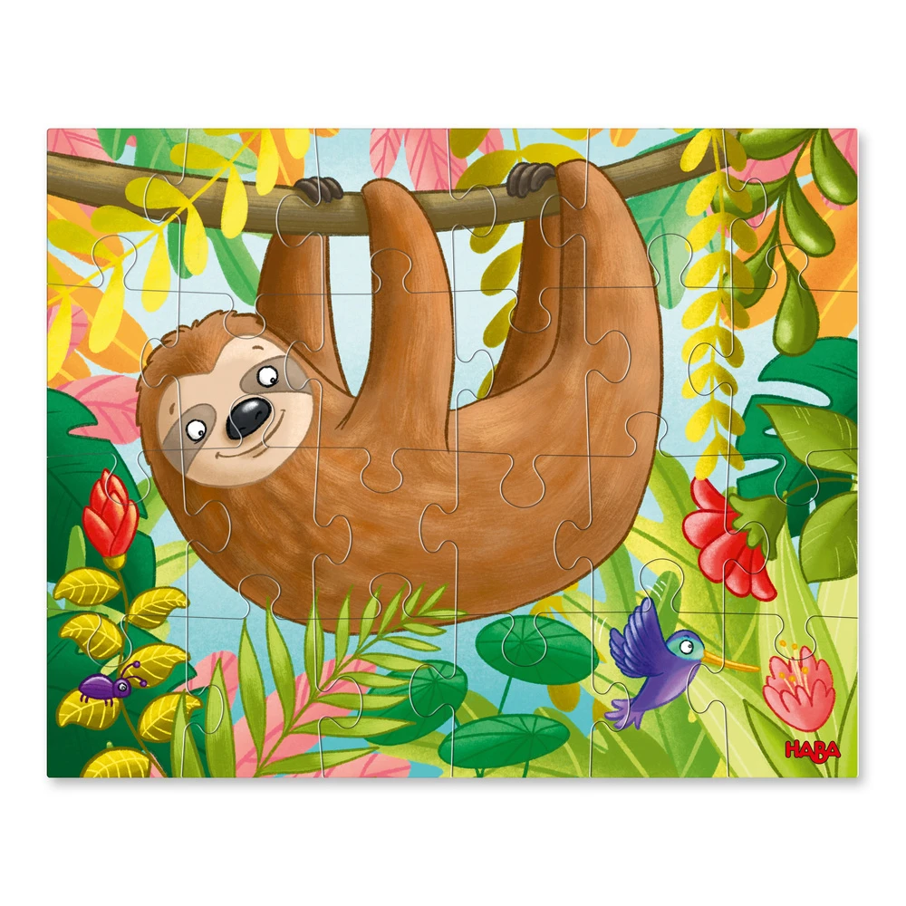 Drie dierenpuzzels van stevig karton in een doos. Op de puzzels staan vrolijke dieren afgebeeld. Geschikt voor puzzelaars vanaf 4 jaar.