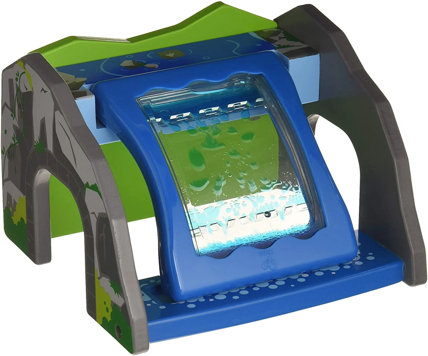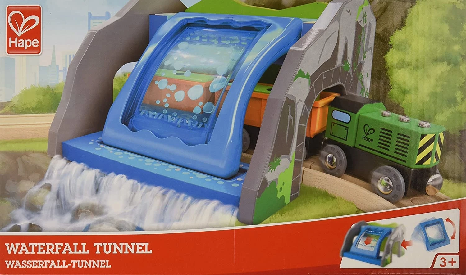 Rij veilig met jouw trein door deze waterval tunnel van Hape. Het lijkt net of je onder een waterval doorrijdt. Als je de tunnel omdraait dan druppelt de magische vloeistof omlaag.