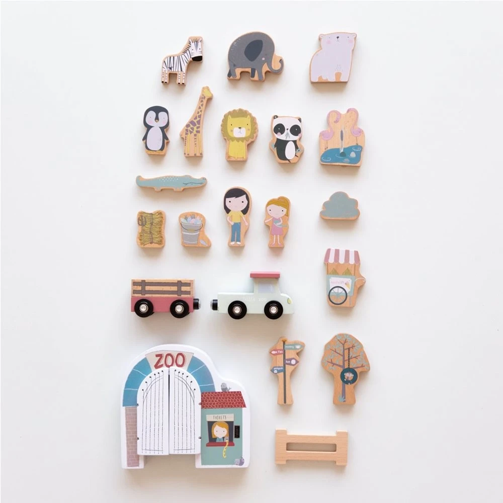 Deze houten dieren en elementen uit de dierentuin zijn perfect als toevoeging bij de treinbaan. Maak van de laatste stop met de trein een gezellige dag in de dierentuin! Ontworpen voor je kindje om zijn/haar eindeloze fantasie uit te drukken.