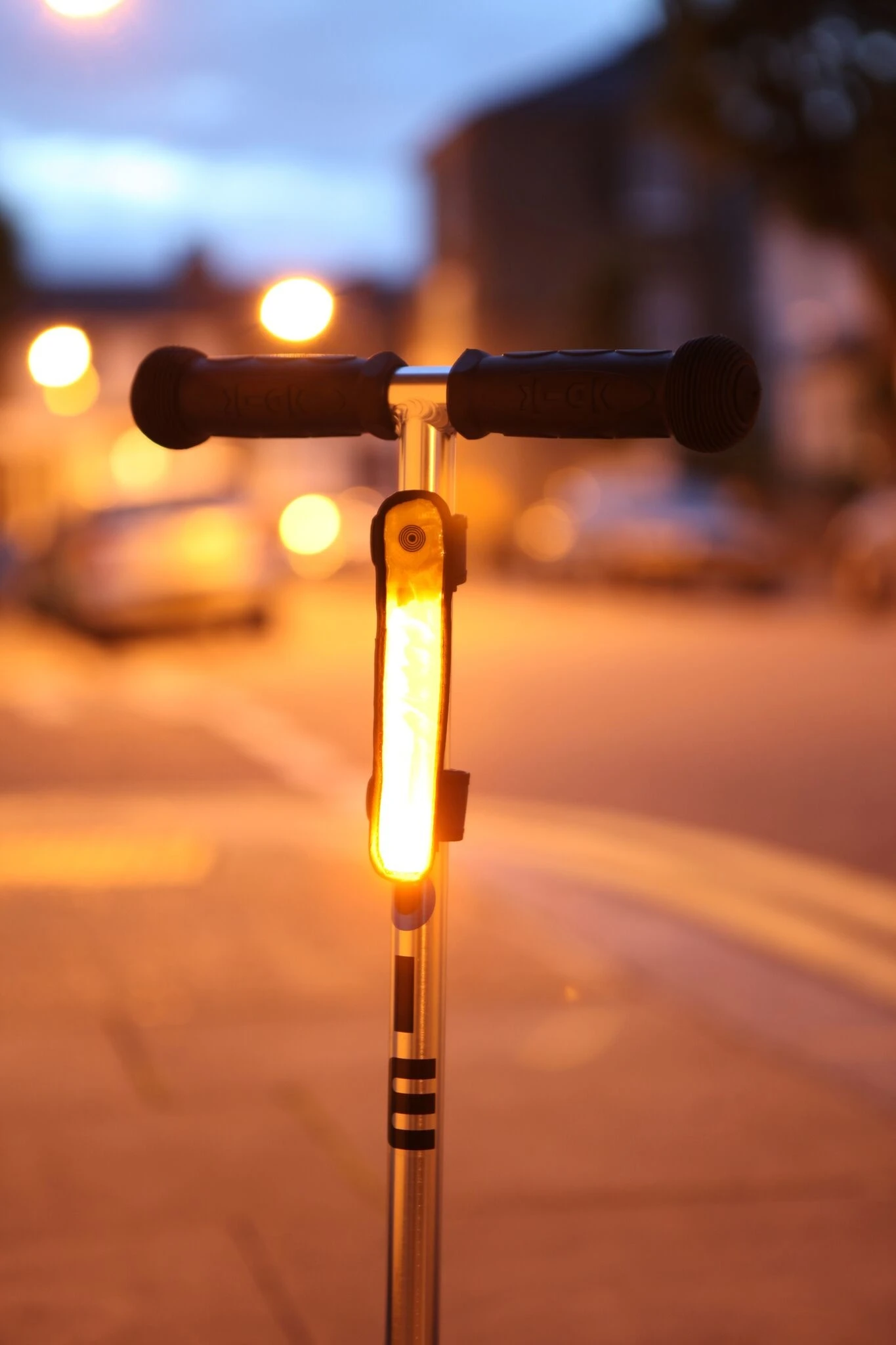 Stepstralers (ScootBeamz) zijn leuke felle lampjes die zorgen voor extra zichtbaarheid. Ze zijn makkelijk te bevestigen, middels twee bandjes van kltittenband die je aan de stuurstang kunt bevestigen. Druk op het knopje bovenaan het lampje om het aan te z