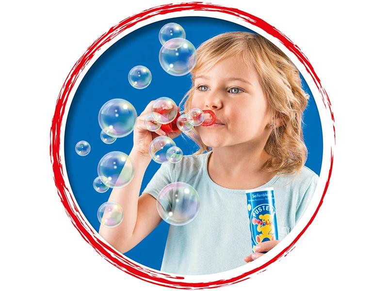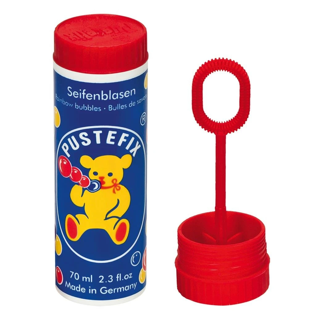 Deze klassieke bellenblaas bevat 70ml vloeistof. Deze wordt willekeurig geleverd (blauwe/rode/gele dop).
