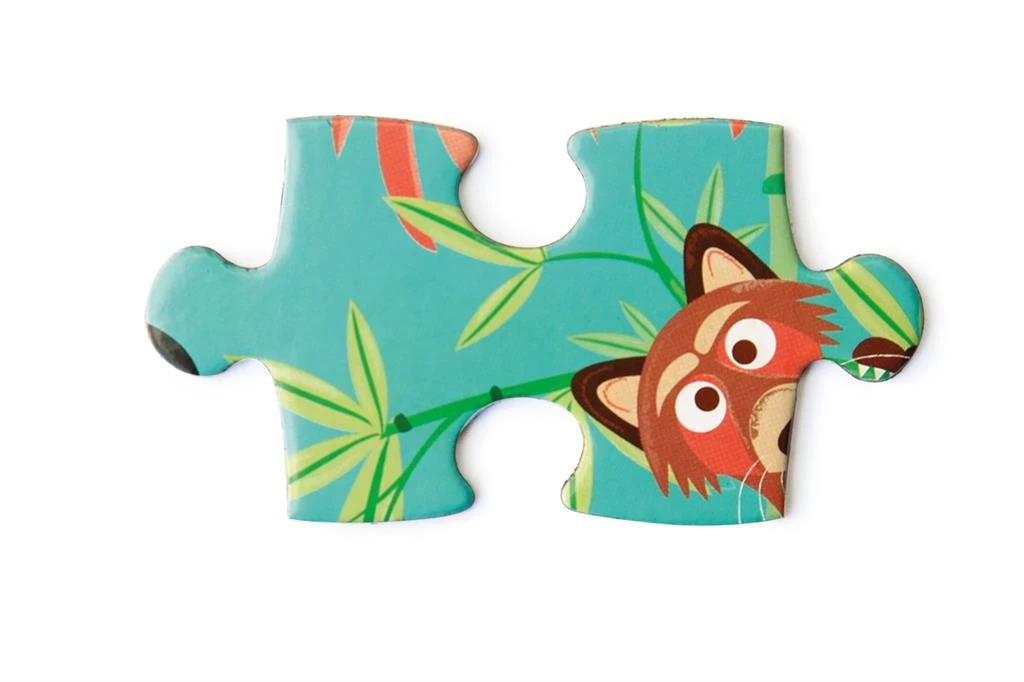 Deze puzzel in de vorm van een boek heeft magnetische stukjes, daardoor ideaal om mee te nemen op reis of op vakantie. Op de puzzel staat een panda afgebeeld die lekker rustig zit te eten. Het boek bestaat uit twee puzzels van elk 20 stukjes.