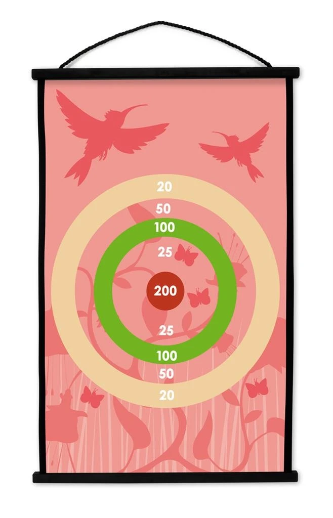 Dubbel speelplezier, want het dartbord is langs beide zijden bedrukt met knappe tekeningen. Dankzij het handige ophangsysteem kan dit spel overal gespeeld worden. De 6 rubberen pijlen met ultrasoepele zuignap zijn door hun grootte en vorm gemakkelijk te werpen, en bovendien zijn ze nog eens licht in gewicht. Kan veilig door kinderen worden gespeeld doordat er geen scherpe punten aan de pijlen zitten. Ze blijven kleven op elk glad oppervlak zonder sporen na te laten. Dankzij het handige ophangsysteem kan dit spel overal gespeeld worden. Verpakt in een doos van stevig karton zodat het canvas en de 6 pijlen steeds compact opgeborgen kunnen worden. ‘Start to dart’ kan alleen, met vrienden of met het ganse gezin gespeeld worden. Spelenderwijs leren kinderen hun hand-oog coördinatie en mentale rekenkunde verbeteren. Scratch Europe, marktleider in dartborden voor kinderen!