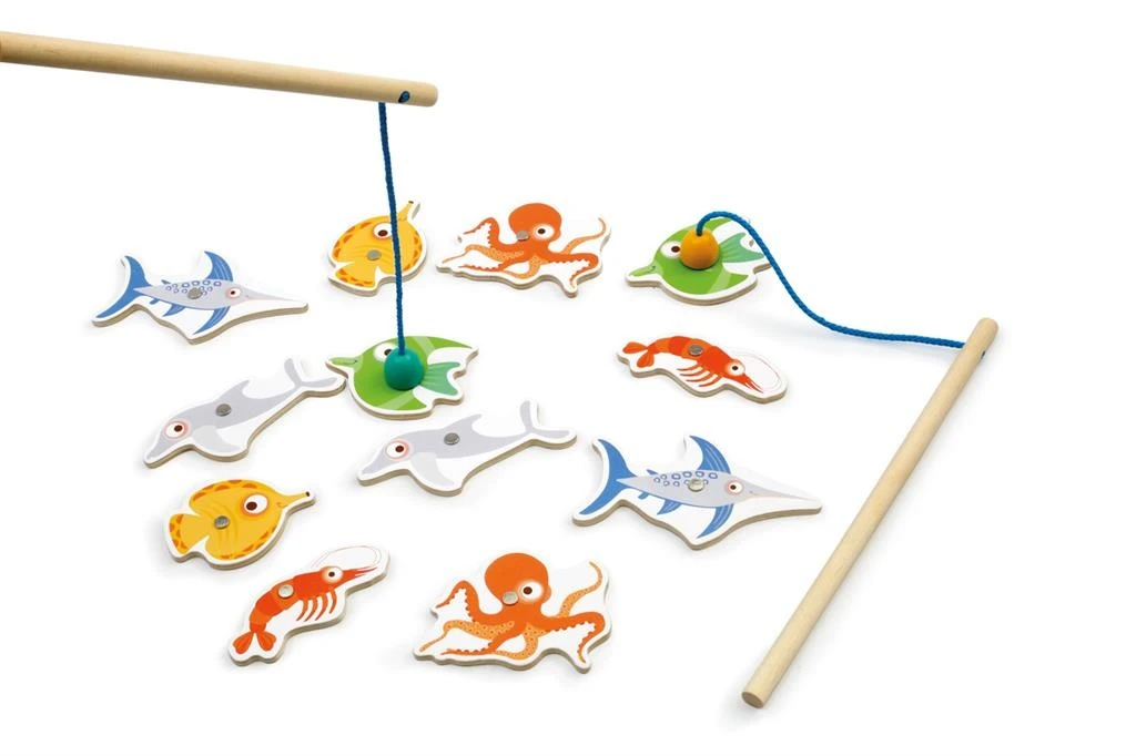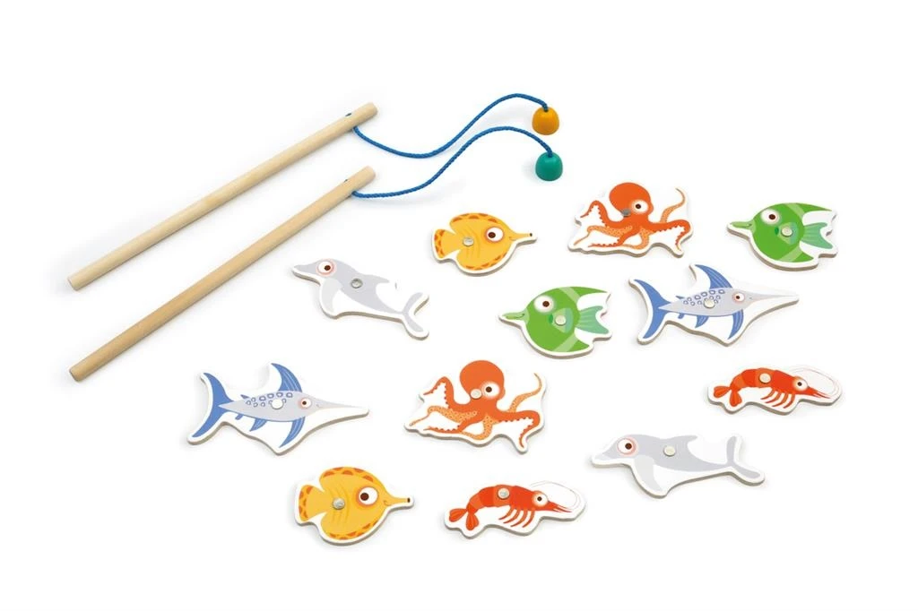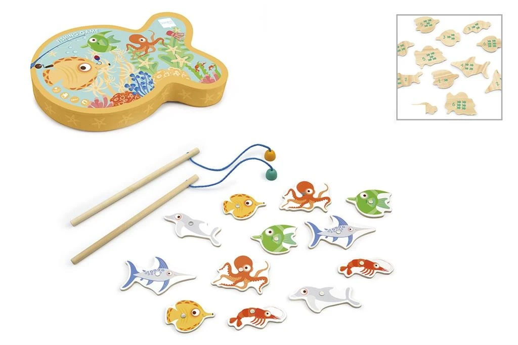 De set bestaat uit 2 hengels en 12 vissen.