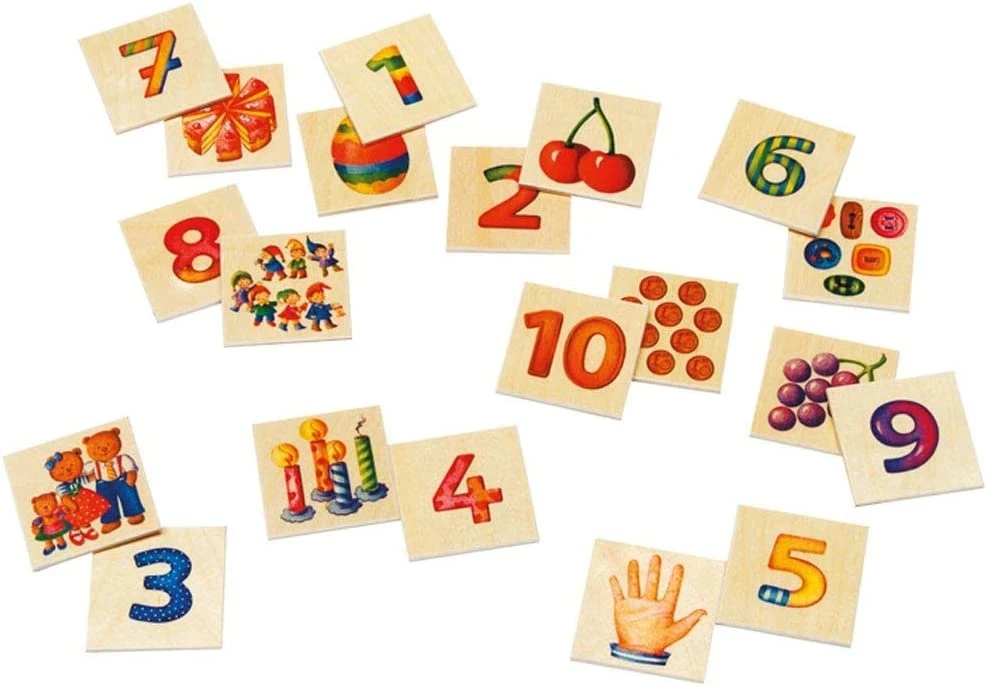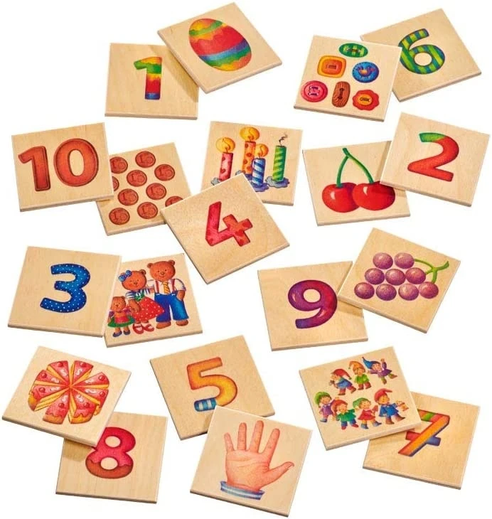 Zoek het juiste aantal erbij. Dit houten spel is mooi vormgegeven, goed voor de ontwikkeling van de getallenkennis.