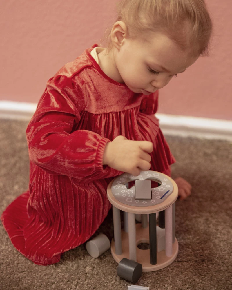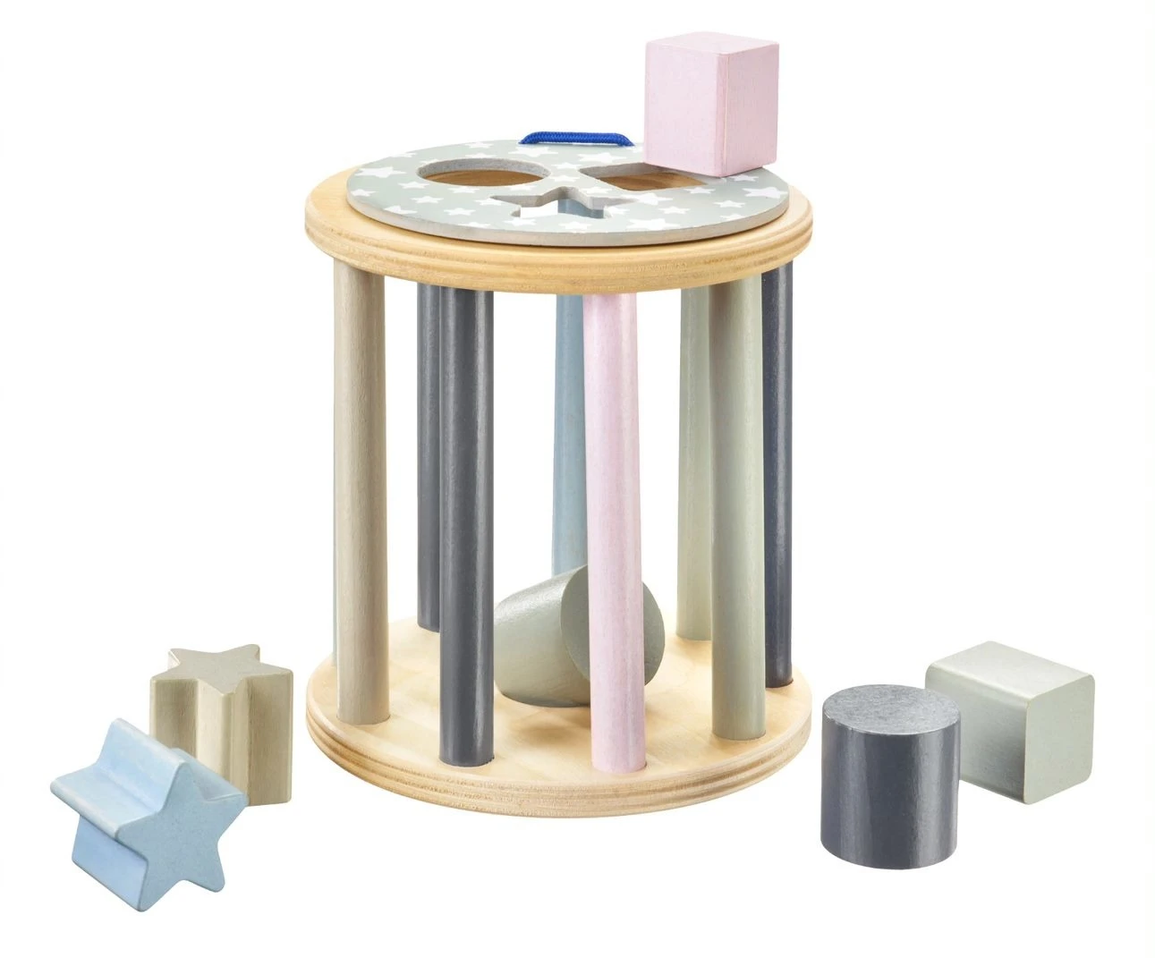 Rolbare sorteerbox met een klassiek sterrenontwerp van bellybutton met drie vormen om te herkennen en te sorteren. Door het indelen van de juiste steekstukken wordt de fijne motoriek en het begrip van geometrische vormen ontwikkeld.