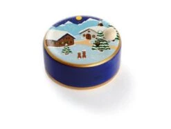 Een muziekdoosje van Weizenkorn met daarop in frisse kleuren geschilderd een beer die een vis wil vangen uit de rivier. De beer probeert de vis te vangen, maar hij moet wel snel zijn want hij is zo ondergedoken.